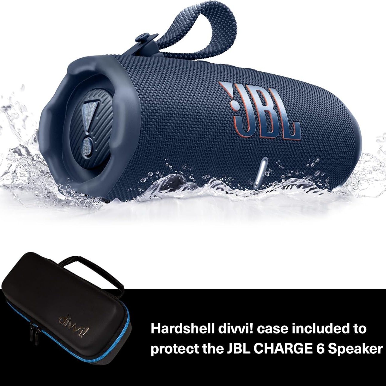 - BLUETOOTH SPEAKER + CASE - This bundle includes one (1) JBL Charge 6 in blue and (1) divvi! Protective Hardshell Case in black.