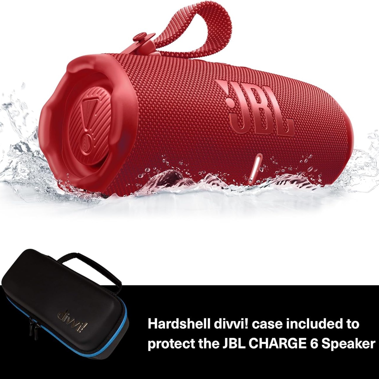 JBL Charge 6 (Red) + Bundle with divvi! Protective Hardshell Case (Black)