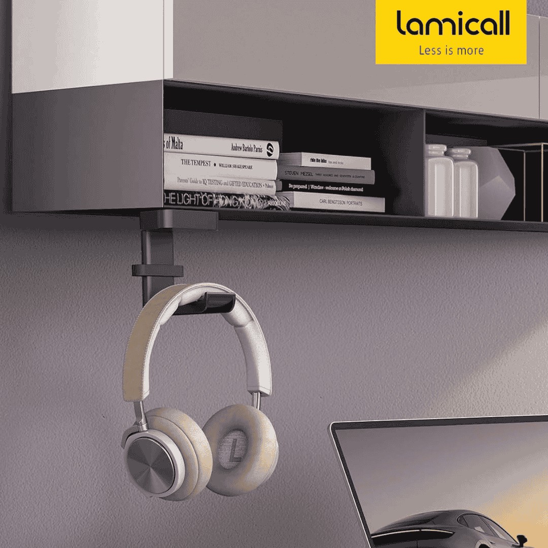 Lamicall Headphone Stand, Headset Hanger - 360 Degree Rotation Earphone Hook Holder Mount, Table Headphone Stand with Cable Organizer, Gaming Headset Clamp for HyperX, Razer, Sony, Sennheiser