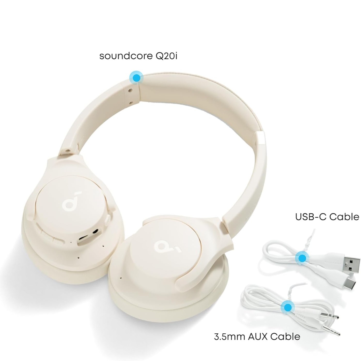 Soundcore by Anker Q20i Hybrid Active Noise Cancelling Headphones, Wireless Over-Ear Bluetooth, 40H Long ANC Playtime, Hi-Res Audio, Big Bass, Customize via an App, Transparency Mode (White)